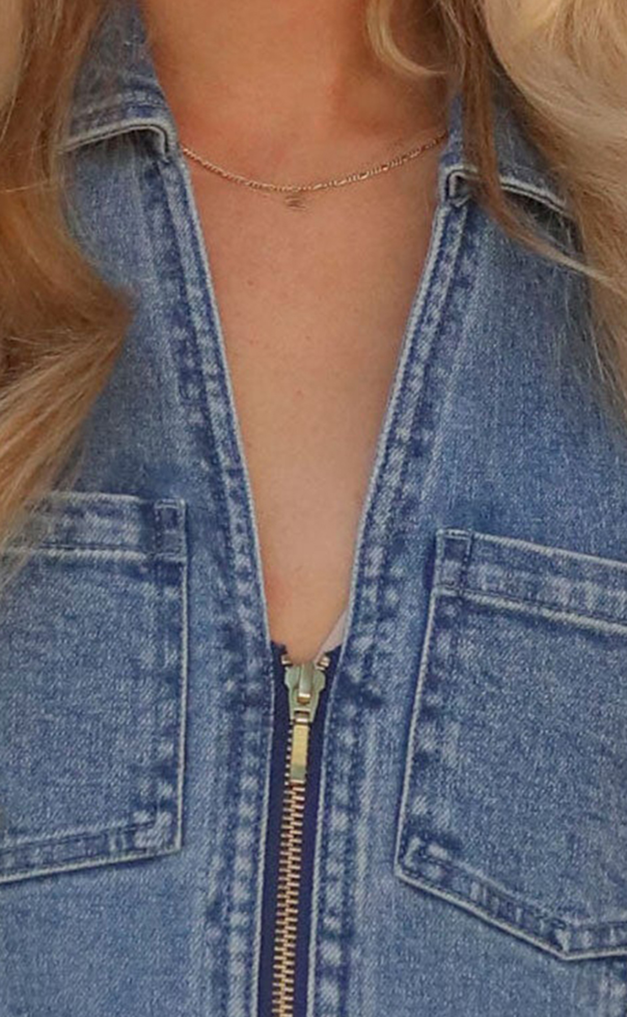 Denim Zip Front Short Dress
