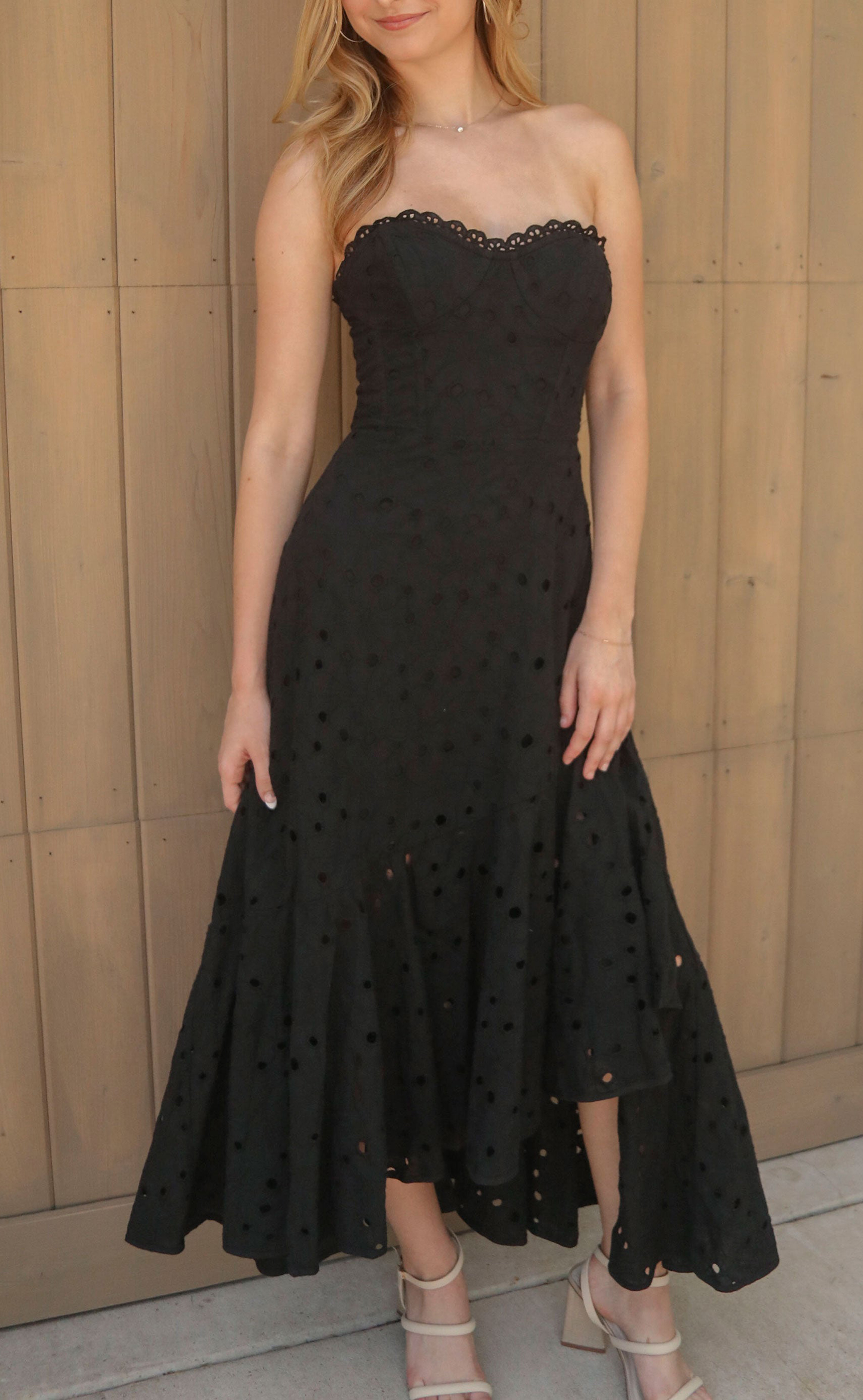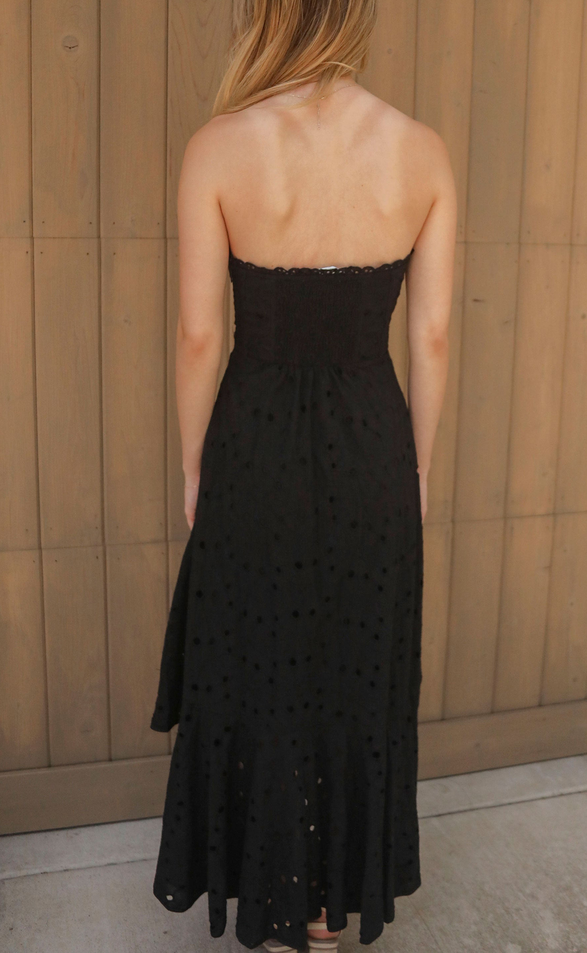 Eyelet Detailing Strapless Midi Dress