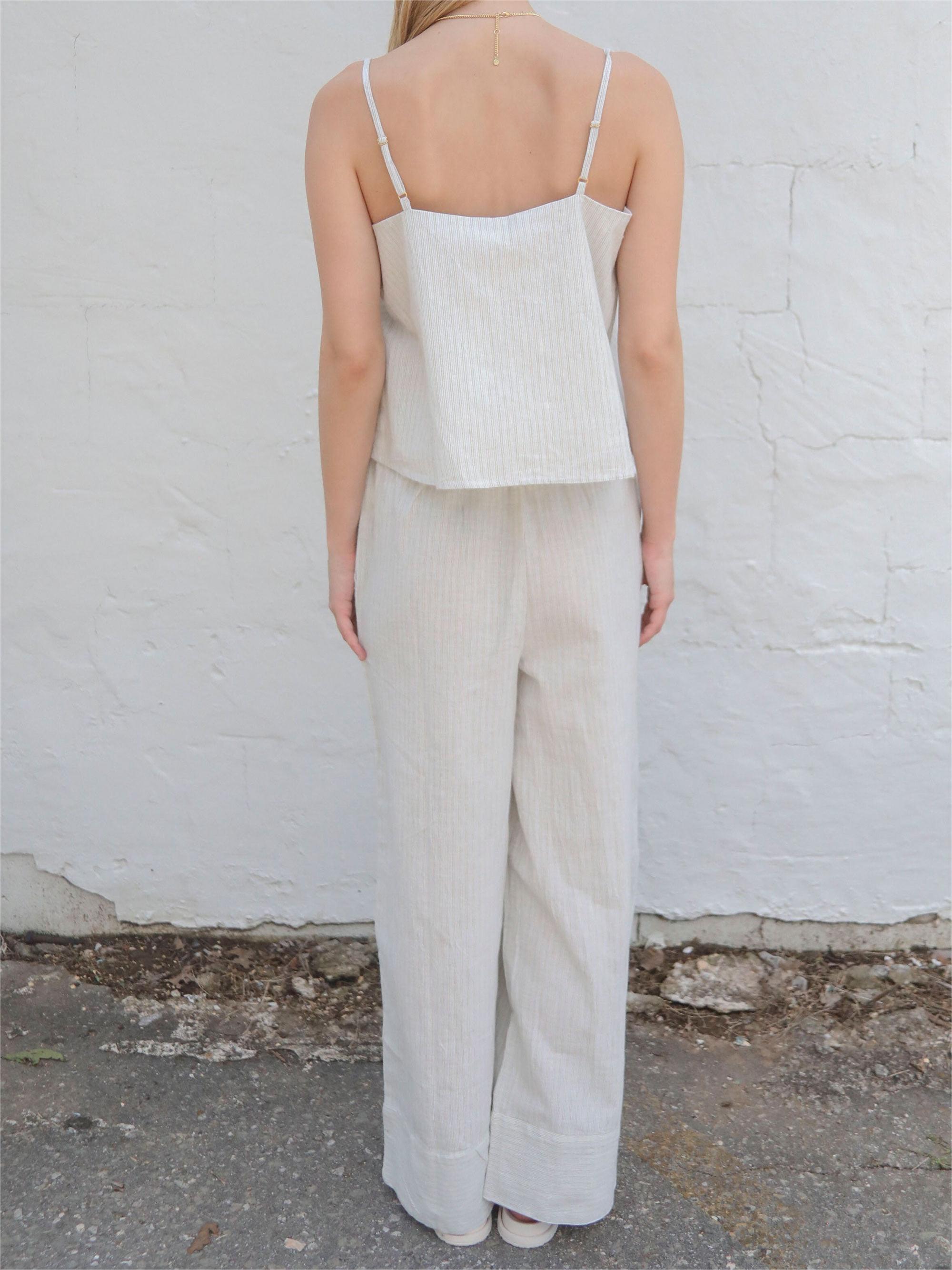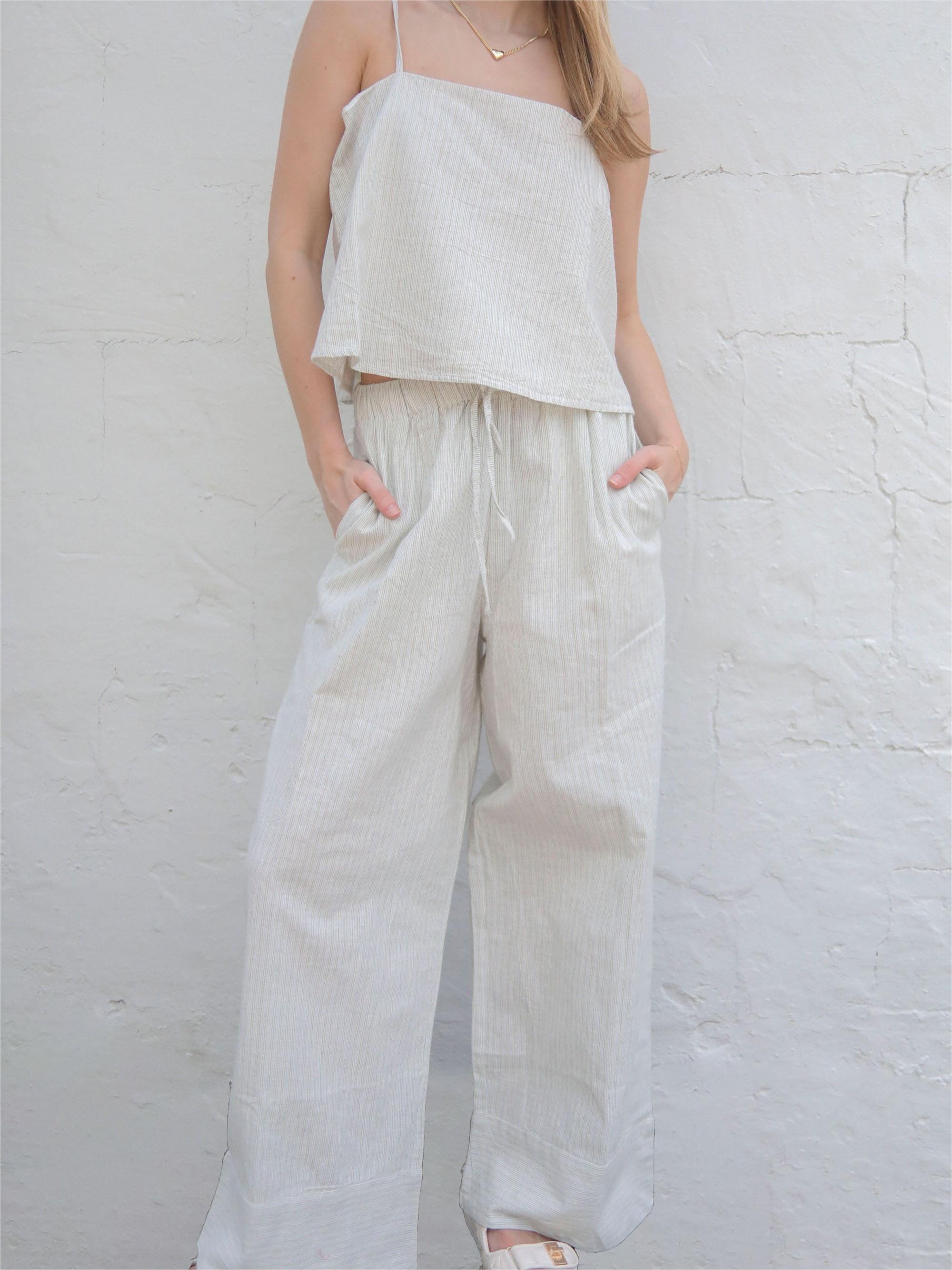 White Wide Leg Striped Pants